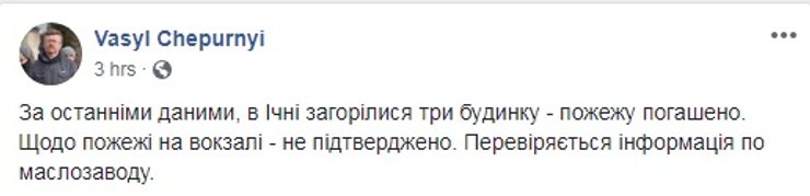 В соцсетях стали появляться сообщения о том, что снарядами разрушена Ичня и ближайшие к арсеналу села. В дальнейшем эта информация не подтвердилась. Дома в Ичне целы, только кое-где повылетали стекла.
