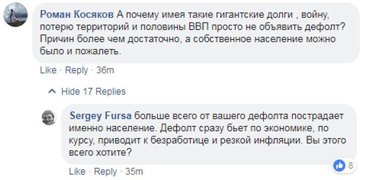 Впрочем, в Сети раздаются голоса, предлагающие оригинально решить проблему государственных долгов. Например, - не платить. Благо, на горячие головы тут же находятся те, кто эти самые головы остужают.