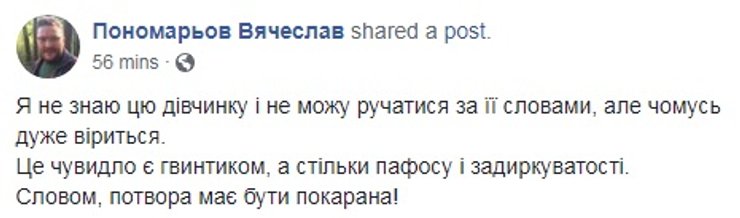 Стоит отметить, что не все комментаторы поверили этой истории. Одних смутил тот факт, что "маньяк" якобы преследовал ее уже несколько недель, но по какой-то причине девушка не блокировала его в Tinder. Даже когда тот пригрозил Наталье, что она "сдохнет как Гандзюк". Если учесть, что чиновница Херсонского горсовета умерла 4 ноября, а пост девушки появился 7 ноября, не совсем понятно, о каких неделях преследования идет речь. При этом оказалось, что Бурейко о Гандзюк не знала, хотя и "угадала", что речь идет о женщине, а не о мужчине.