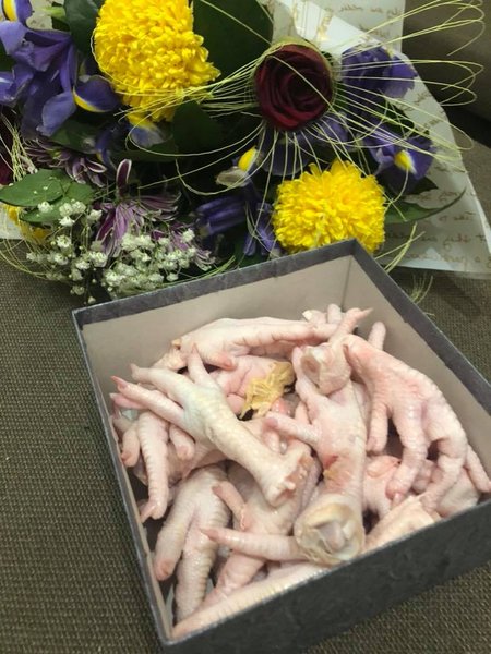 Также Бурейко выложила фото букета цветов и коробки с куриными ногами, которые ей якобы тоже прислал Варченко.