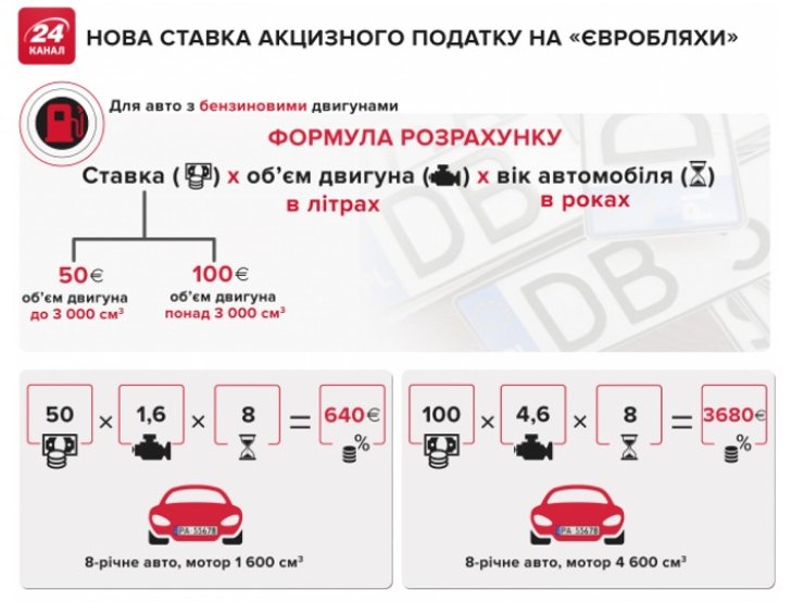 Владельцы авто на "еврономерах" требовали, чтобы "растаможка" автомобиля, состоящая из НДС, пошлины, военного сбора и акциза, обходилась бы владельцу в примерные "40% от стоимости авто". Это бы решило проблему с легализацией "евроблях", а бюджет бы сразу получил деньги за уже давно ввезенные в Украину авто, которые бы начали "растамаживать" владельцы.
