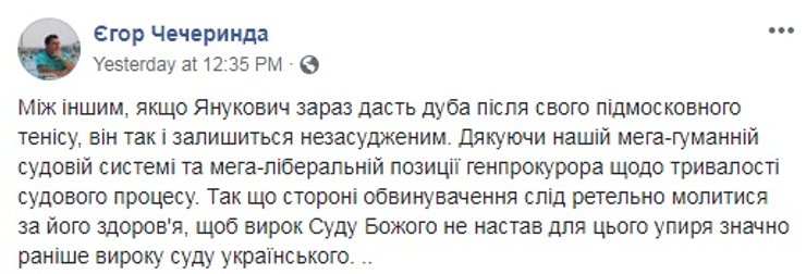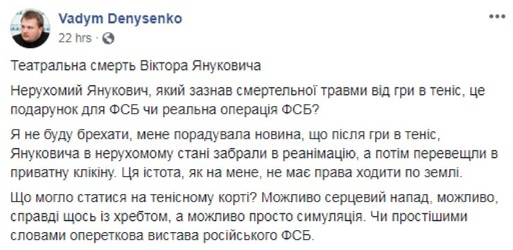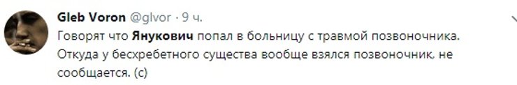 И усомнились в правдивости диагноза. По мнению некоторых пользователей, внезапная травма смахивает на некий план по затягиванию судебного процесса. Даже появились предположения, что Янукович может "дать дуба", лишь бы не быть осужденным.