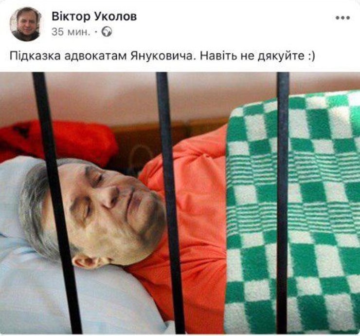 Последнее слово экс-президента в Оболонской райсуде перенесли на три недели. Сбежавший "гарант" как нельзя кстати умудрился получить спортивную травму и слечь на больничную койку