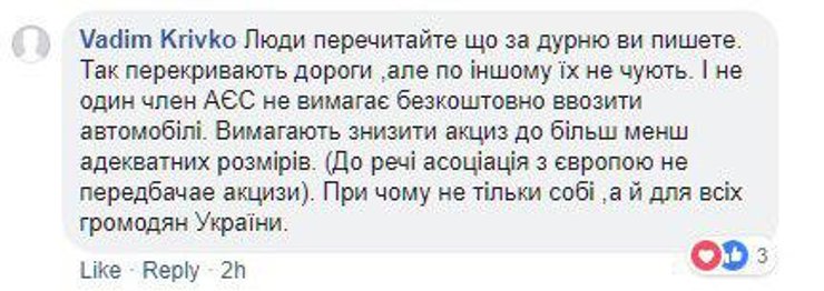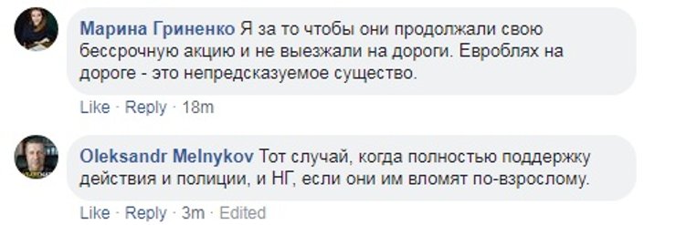 В комментариях мнения пользователей соцсетей разделились. Одни поддерживают требования "евробляхеров" и считают их методы вынужденными. Другие, наоборот, надеются, что полиция и Нацгвардия "вломят им по-взрослому".
