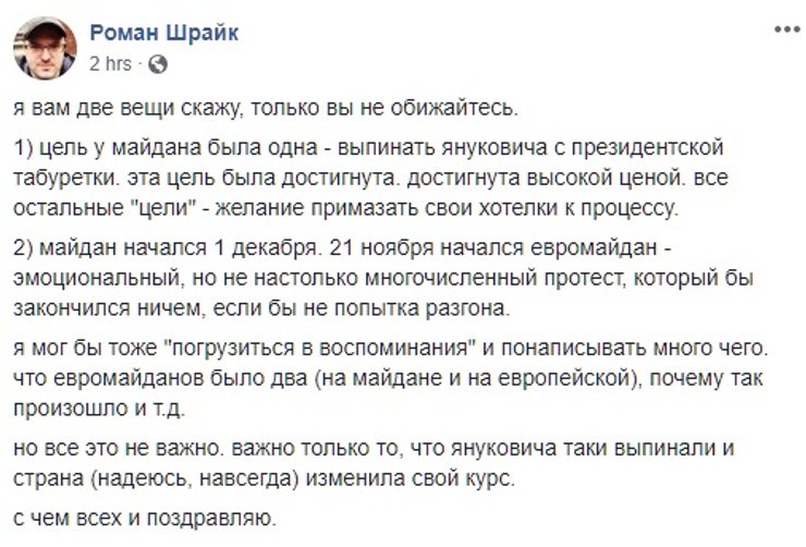 Журналист Юрий Бутусов отметил, что Революция Достоинства добилась всех целей, которых могли достичь собравшиеся в центре Киева люди.
