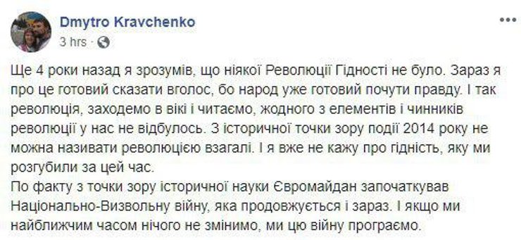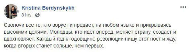 "Наша проблема в том, что Ланселоты, сражавшиеся с драконами не переродились в драконов, а оказались сами драконами. Мы вовремя не смогли понять, что на них были лишь маски рыцарей, а суть оставалась драконьей", - написал в Facebook экс-спикер Правого сектора, а сейчас народный депутат Борислав Береза.