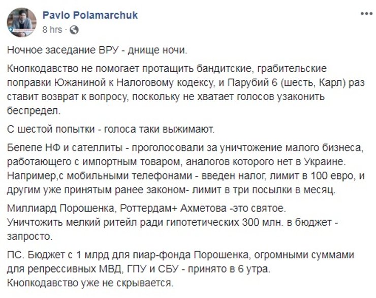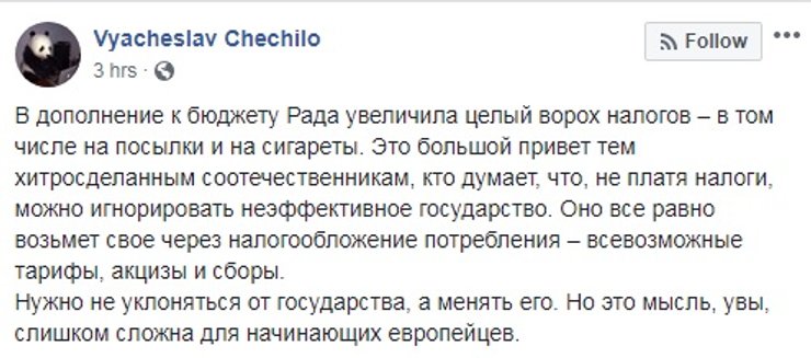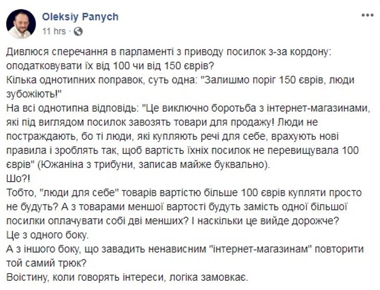 Совладелец и основатель крупнейшего в стране интернет-магазина Rozetka.ua Владислав Чечеткин ранее писал, что контрабандисты все равно найдут пути, как обойти закон. И уменьшение минимальной стоимости посылок тут никак не поможет.