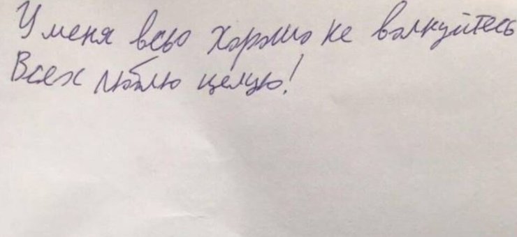 Также информацию о себе передал моряк Сергей Цыбизов. Он рассказал своему адвокату, что его не пытали, однако "давили психологически для дачи необходимых показаний". Вину на суде он не признал, заявил, что исполнял приказы вышестоящего начальства. Также через адвоката он передал записку своим родным.