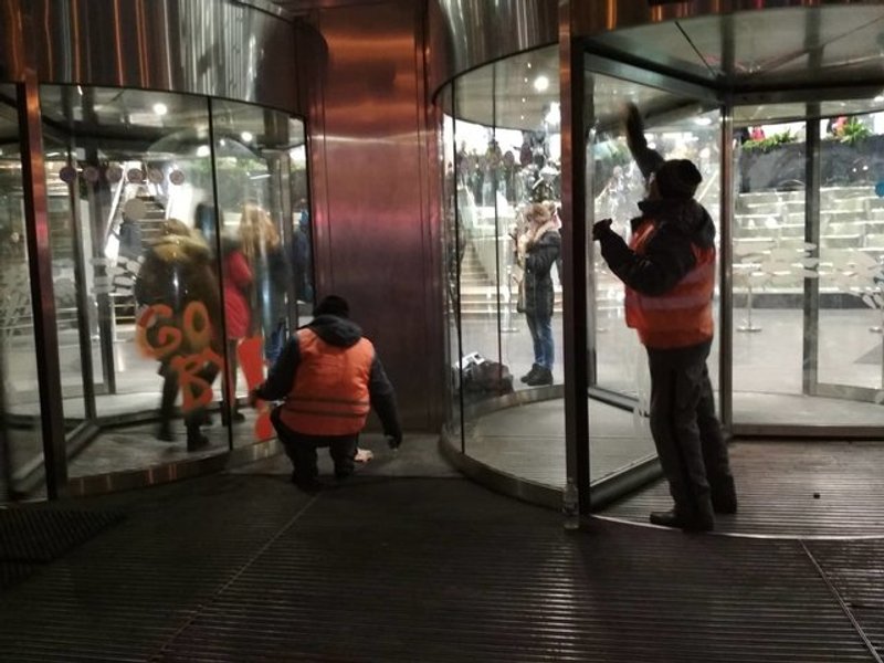 После 18:00 акция протеста в ТРЦ "Ocean Plaza" завершилась. И сотрудники, как и накануне, приступили к мойке окон. Как видно на фото, посетителей акция протеста не отпугнула.