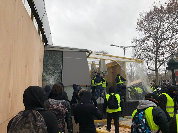 9 декабря "желтые жилеты" снова вышли на акцию протеста. В этот раз Париж более основательно подготовился к пришествию недовольных политикой Макрона. В центре французской столицы магазины закрыли витрины фанерой. Не работали банки, рестораны и супермаркеты. Были закрыты для посещения Эйфелева башня, Лувр, центр Помпиду и прочие достопримечательности. Но участники акции все равно нашли, что разбить.