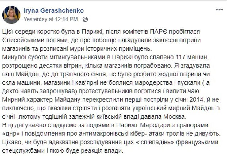 Так, в Службе безопасности Украины заявили, что за спинами мирных демонстрантов во Франции действовали радикалы, которых поддерживает РФ. И подобные акции могут повторится в Бельгии, Германии, Испании, Болгарии и других европейских странах.