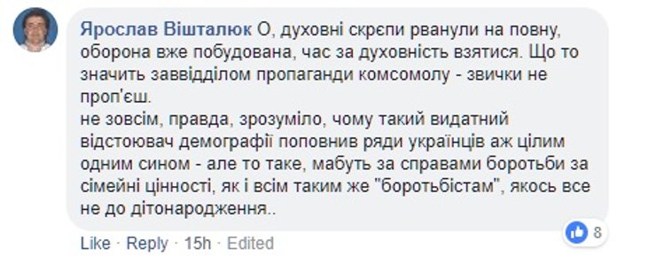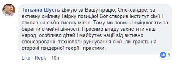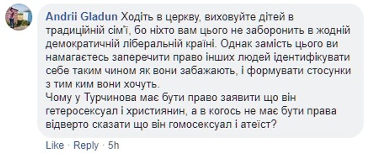 Позиция Турчинова нашла в соцсети своих приверженцев, которые также заявили о поддержке "семейных ценностей" и неприятии "гомосексуальной пропаганды".