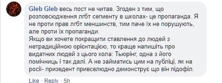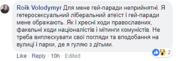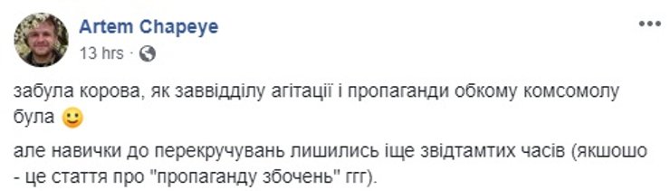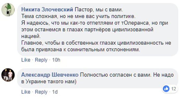 Само собой, призывы к прямому насилию, или искоренению "греха" силовыми методами не прозвучали. Но было неприятие именно "пропаганды", или того, что под ней понимают читатели секретаря СНБО.