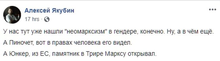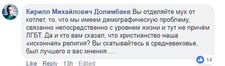 По его мнению, одна из реальных угроз национальной безопасности – катастрофическое сокращение населения, и противостоят этой проблеме как раз защитники семейных ценностей. В то же время, гендерные и ЛГБТ-активисты "под прикрытием" правильных слов о правах человека, толерантности, защите женщин от насилия навязывают обществу "идеологию неомарксизма".