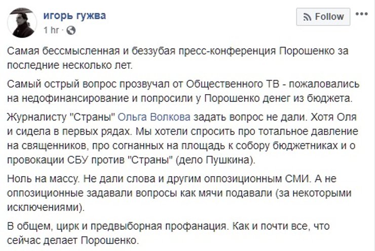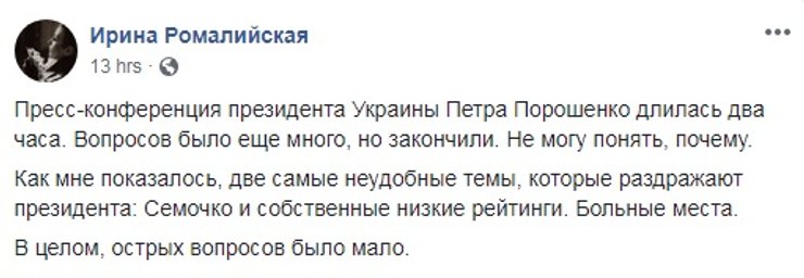 Так, главный редактор Фокуса Евгений Гордейчик смог задать два вопроса, но президент ответил только на один из них. Петр Порошенко рассказал об успехах в реформировании генпрокуратуры и дал оценку успехам в борьбе с коррупцией, но умолчал, почему не принял заявление Юрия Луценко об отставке, а также не оценил успехи своего соратника на посту генерального прокурора.