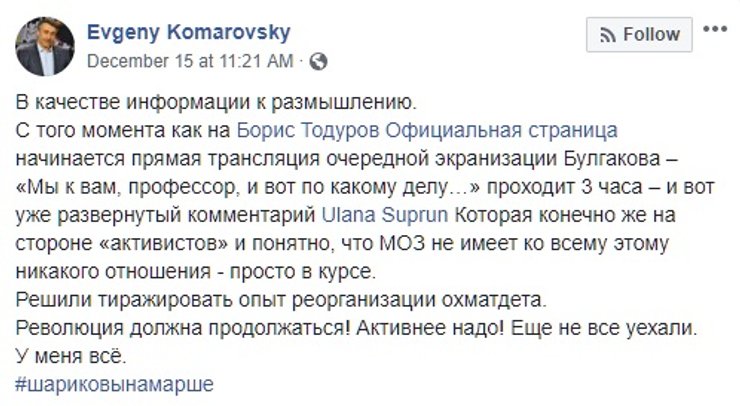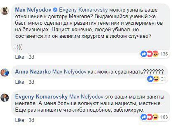 Конфликт в Институте начали сразу активно обсуждать в Сети, причем и не причастные к медицине лица. Например, заместитель министра экономического развития и торговли Украины Максим Нефедов даже сравнил Тодурова с нацистским доктором Менгеле.