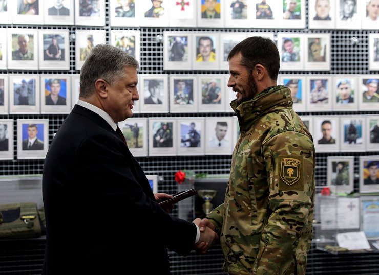Эта история началась еще 6 декабря, когда пресс-служба президента опубликовала фотографию Петра Порошенко с бойцами десантно-штурмовых войск, у одного из которых на груди красовалась эмблема с черепом и скрещенными костями. Довольно популярный сюжет, но есть, как говорится, нюанс.