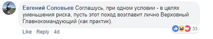 Немного света на анонсированный секретарем СНБО поход пролил заместитель министра по вопросам временно оккупированных территорий Юрий Грымчак. Он сообщил, что такой поход действительно готовится, но состоится "не в этом месяце".