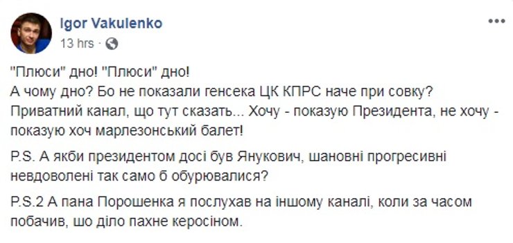 Впрочем, часть пользователей если не поприветствовали отход от традиций, то, по крайней мере, не смогли остаться равнодушными, в n-й раз увидев у себя в ленте довольно однотипную критику телеканала Коломойского.
