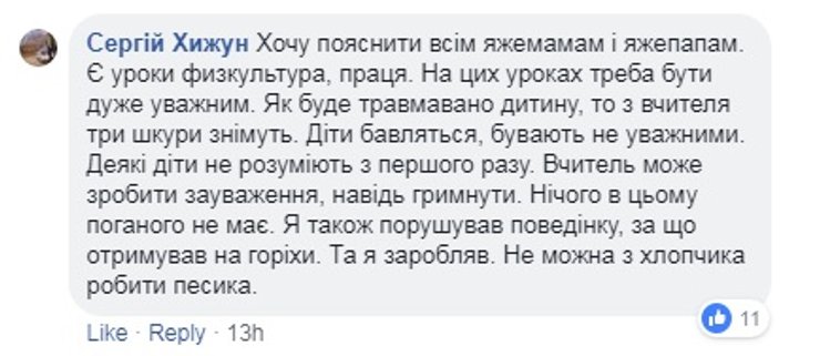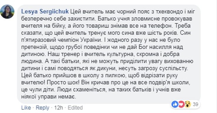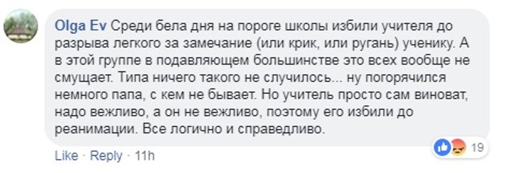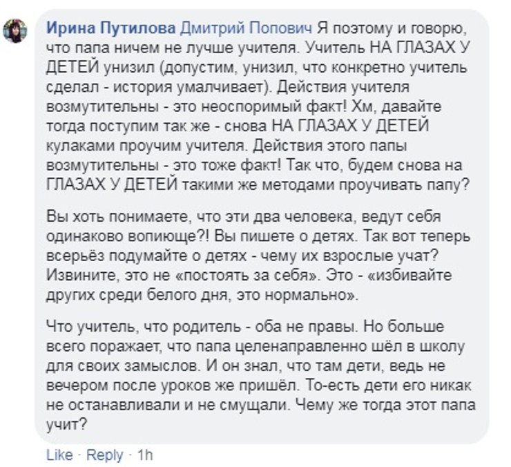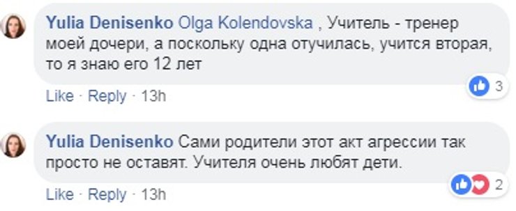Многие родители, в том числе и те, чьи дети учатся в обозначенной школе, выступили в защиту избитого учителя, описав его как порядочного человека и прекрасного педагога.