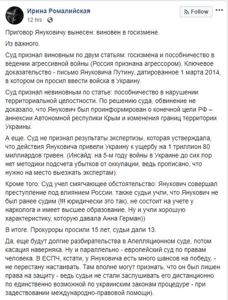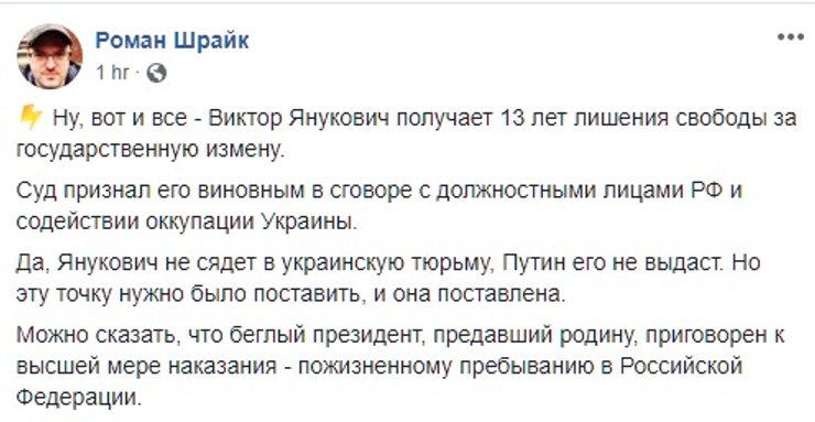 Другие задались вопросом: да, приговор вынесен, а что дальше? Виктор Федорович в России, а то и вовсе на лечении где-то далеко в неизвестной клинике, и возвращаться пока не собирается.