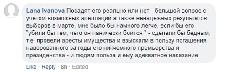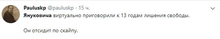 Впрочем, часть пользователей предположили, что если приговор в отношении Януковича все-таки приведут в исполнение, то он, учитывая возраст изменника родины, будет равносилен пожизненному заключению.