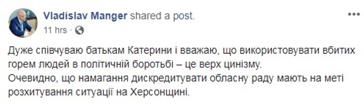 Глава Херсонского облсовета Владислав Мангер также предположил, что безутешного отца кто-то использует в своих целях и намекнул, что этот кто-то "раскачивает" лодку.