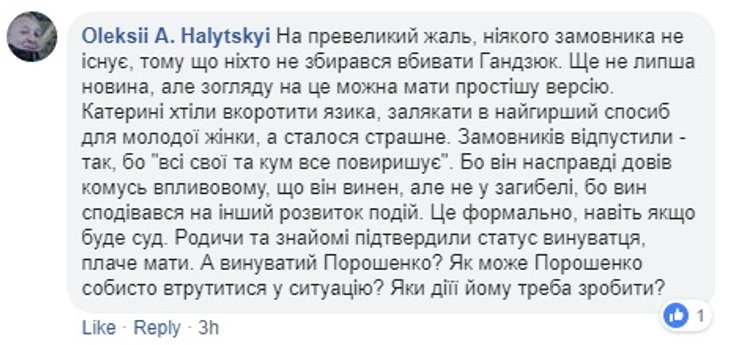 Другие засомневались, что призыв Виктора Гандзюка будет услышан, и напомнили, что расследование резонансного убийства до сих пор не вышло на заказчиков.