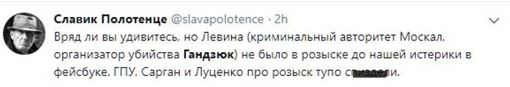 21 января Служба безопасности Украины объявила в розыск криминального авторитета Алексея Левина (Москаленко) по подозрению в организации убийства Гандзюк.