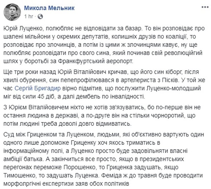 Это заявление спровоцировало активное обсуждение, кто же служил больше: сын Луценко или сын Гриценко?