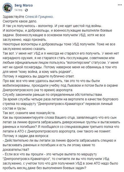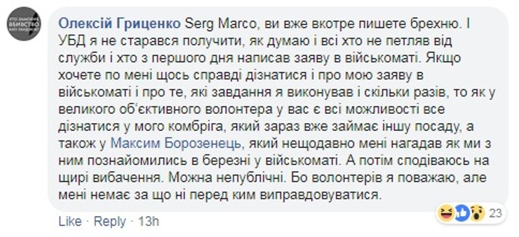 При этом Алексей Гриценко, у которого есть профиль в соцсети, ответил на некоторые обвинения, впрочем, не предоставив какой-либо детальной информации о службе.