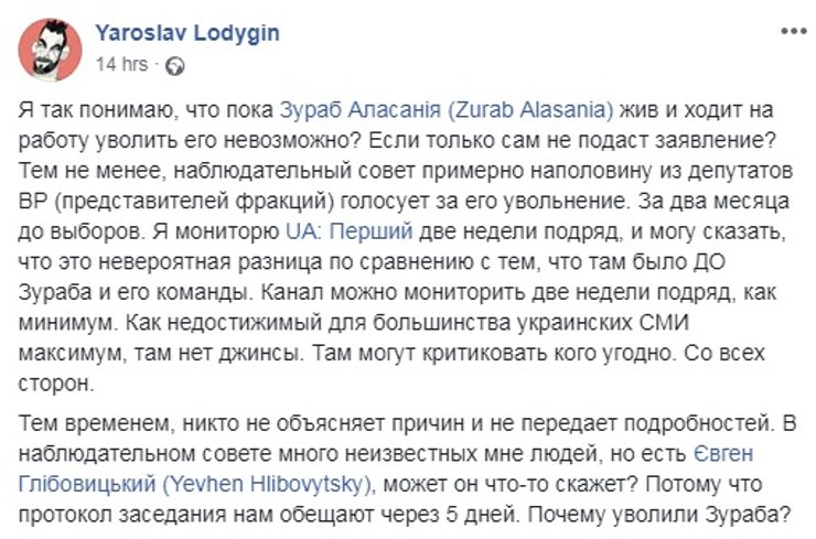 При этом некоторые критики решения пошли дальше, намекая на то, что UA: ПЕРШИЙ в его нынешнем виде отдельно от Зураба Аласании существовать не сможет.
