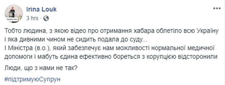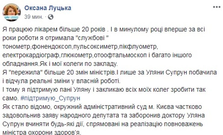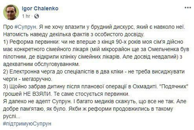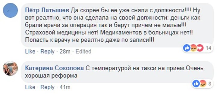 Ожидаемо отстранение Супрун нашло и своих сторонников. Ведь далеко не все с энтузиазмом воспринимают проводимую под ее началом медицинскую реформу в стране.