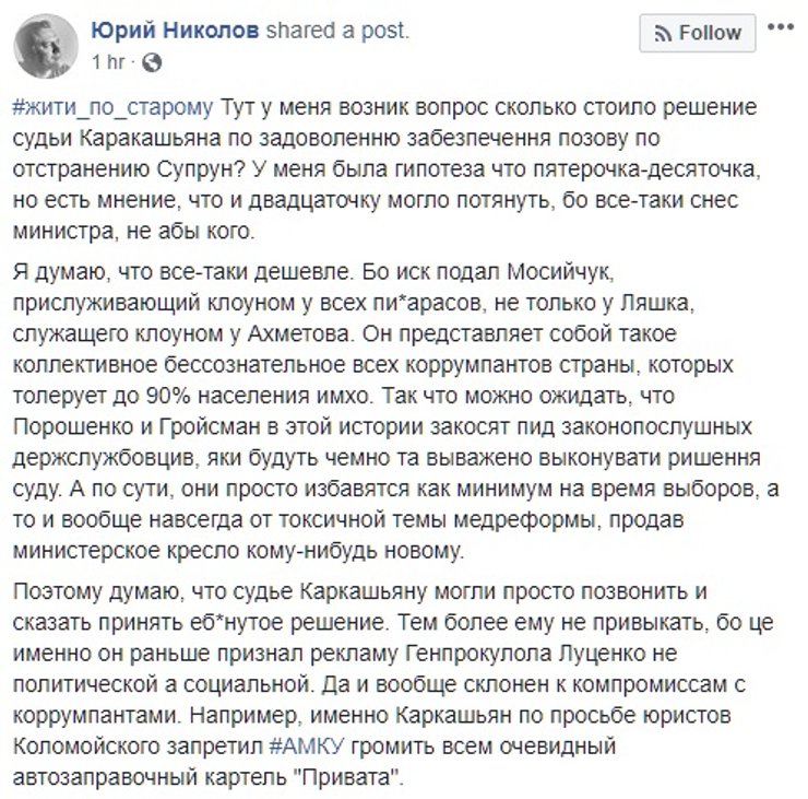 Многие пользователи заявили, что отстранение Супрун в первую очередь выгодно фармацевтическому лобби, разного рода "коррупционерам" и противникам реформ. Традиционно увидели и "руку Банковой".