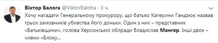 - ЧИТАЙТЕ ТАКЖЕ: "Партии убийц". Как в соцсетях отреагировали на обвинения отца убитой Кати Гандзюк в адрес Тимошенко и Порошенко