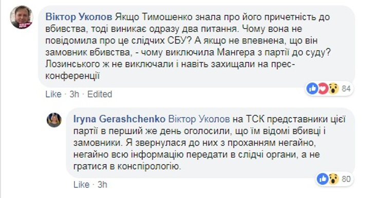 Также в соцсетях посчитали подозрительным исключение Мангера из "Батькивщины", как раз накануне заявления ГПУ.