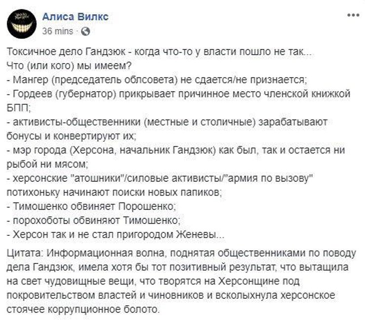 Правда, разоблачительное заявление Мангера сразу поставили под сомнение. Юрист Маси Найем, например, задался вопросом, почему, якобы обладая неопровержимыми доказательствами, глава Херсонского облсовета за шесть месяцев так и не передал их следствию.