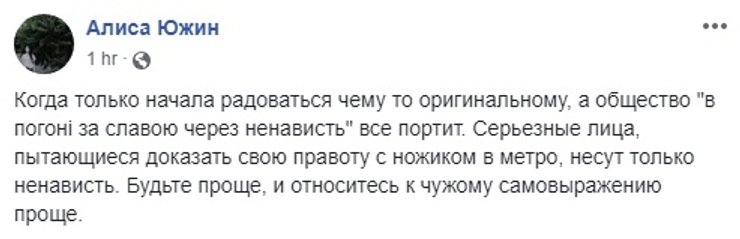 Но пока продолжались культуроведческие дискуссии в соцсетях, один из критиков выставки, винницкий радикал Юрий Павленко (Хорт), взял канцелярский нож и испортил все портреты Тараса Шевченко на станции метро.