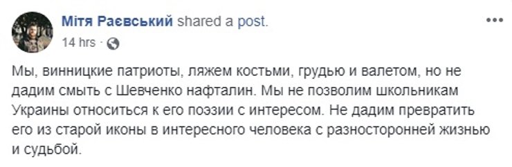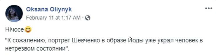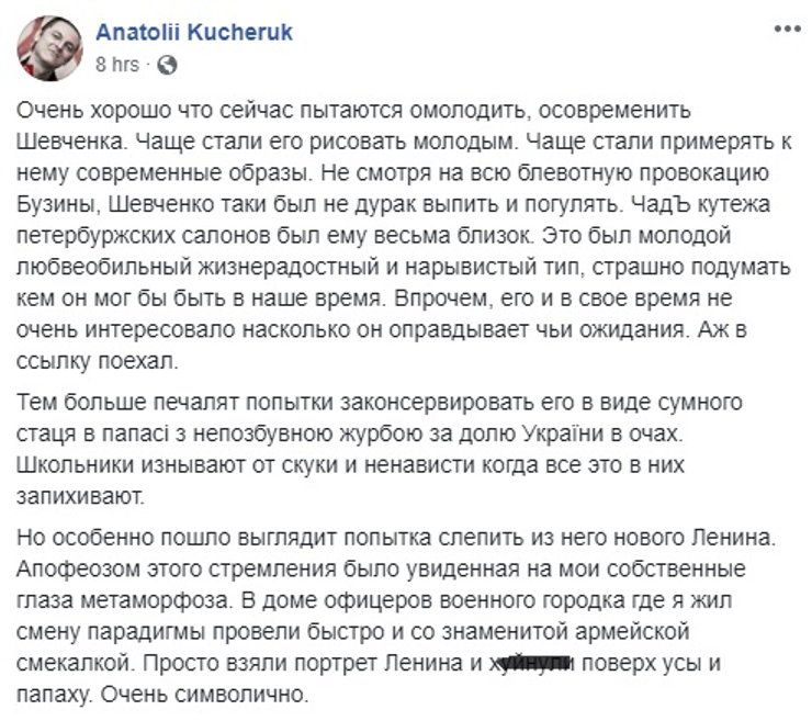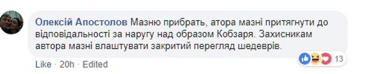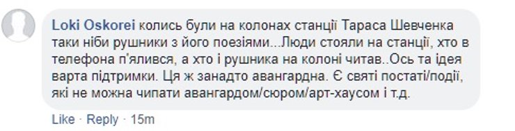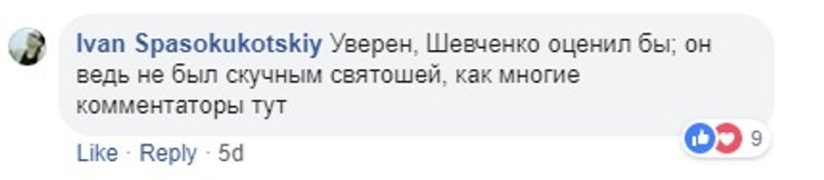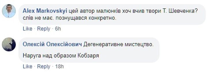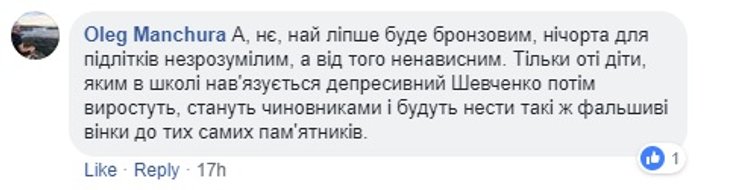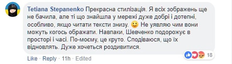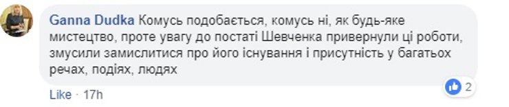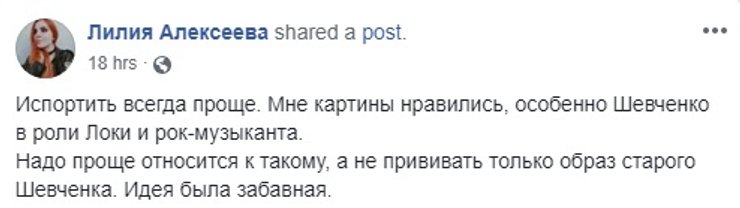 И "проехались" по художественной составляющей. Мол, если бы Шевченко был изображен более традиционно, то это приемлемо. А подобная рискованная авантюра обречена на провал.