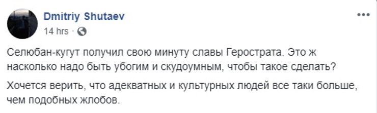 Поступок борца с псевдоискусством оценили не все. Сравнили его с известным вандалом прошлого и предположили, что нетерпимость он черпает в собственной необразованности. Но никак не в патриотизме.
