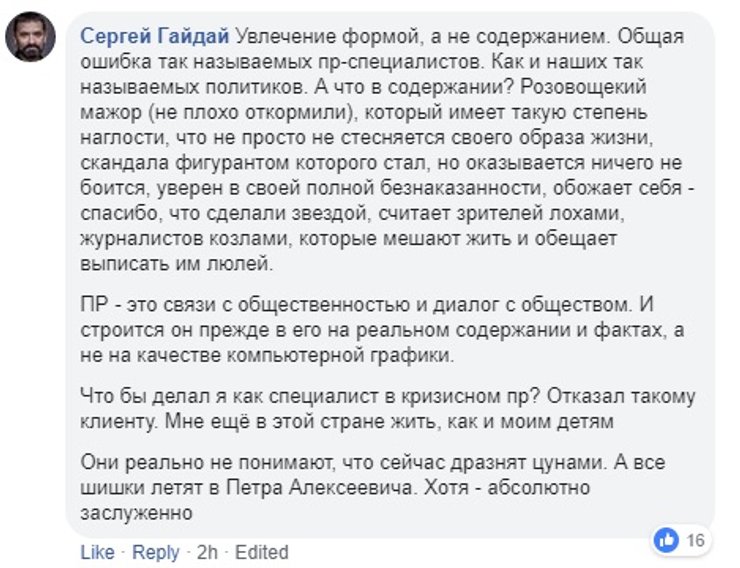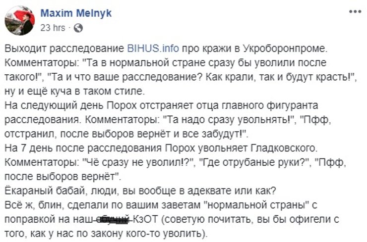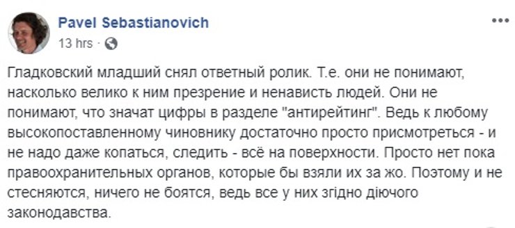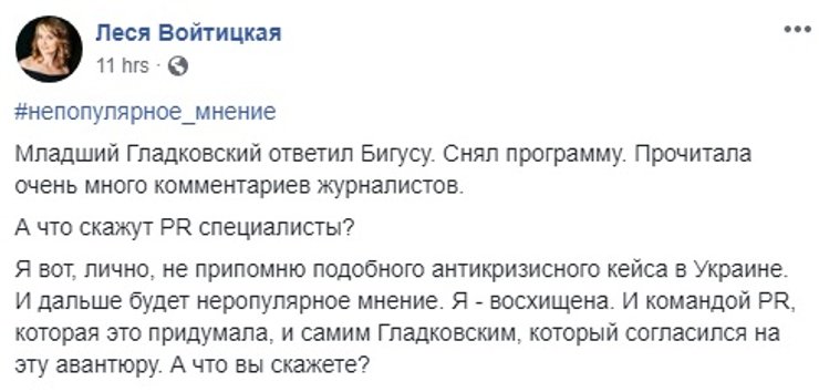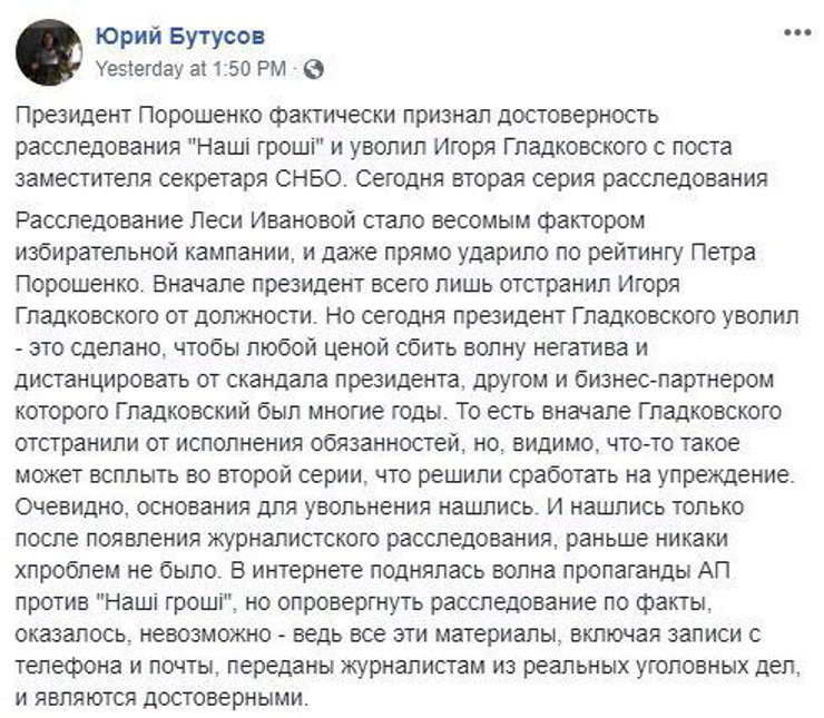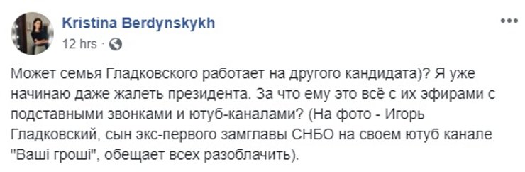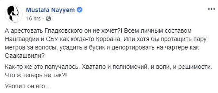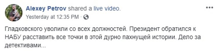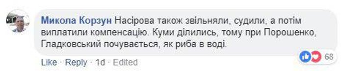 Этого однако показалось недостаточным для критиков Петра Порошенко, которые припомнили ему куда более грубые действия по отношению к политическим оппонентам, а также, что прогнозируемо, высказали предположение, что Гладковскому вскоре подберут "не менее хлебную должность"