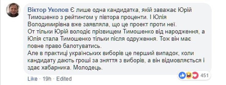 Однако, в соцсетях и остро обсуждают, что именно сподвигло Юрия Тимошенко баллотироваться в президенты. Мало кто строит иллюзии относительно его целей.