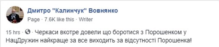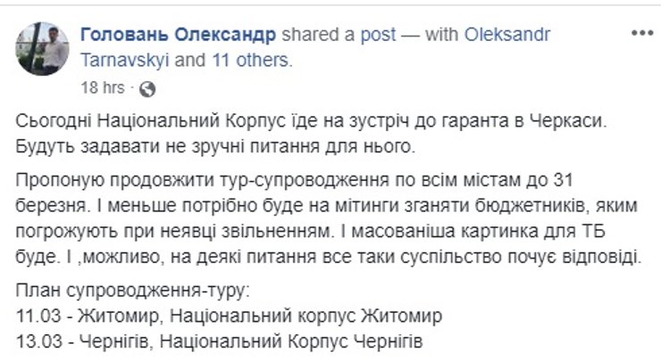 А пока президент продолжает ездить по стране, можно ожидать повторения конфликта в Черкассах. Некоторые уже публикуют "план" новых поездок президента и возможных провокаций там.