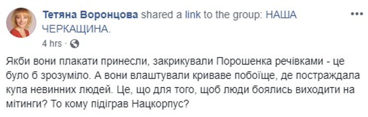 При этом часть пользователей соцсетей заявили, что участники акций в Киеве и Черкассах сделали все правильно и только так можно добиться справедливости.