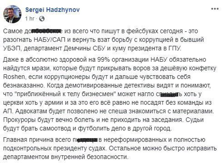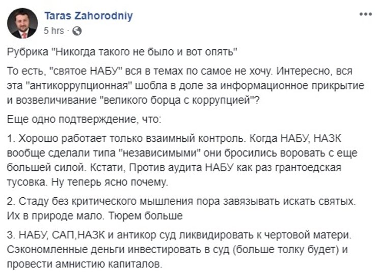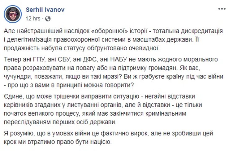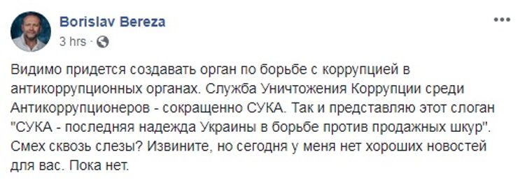 В связи с развивающимся скандалом в соцсетях прозвучали призывы отправить в отставку руководителей названых журналистами ведомств, и даже более радикальные предложения - вообще распустить НАБУ, САП, НАПК и еще несозданный антикоррупционный суд, как оказавшиеся неэффективными органы.
