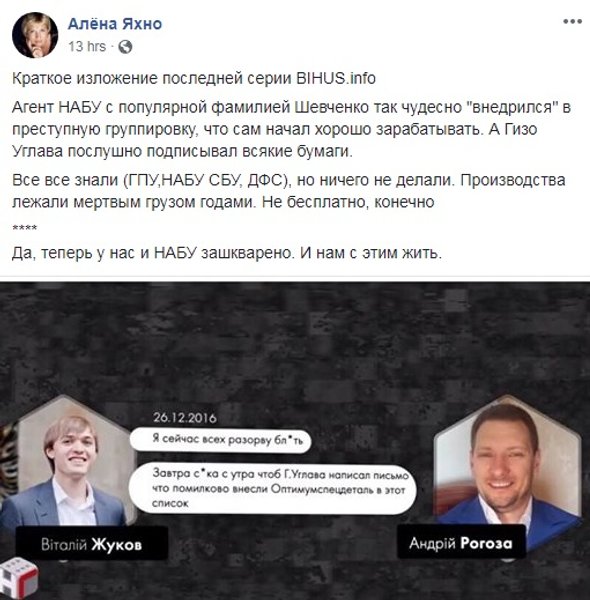 Руководство НАБУ на последнюю часть расследования Bihus.Info пока никак не отреагировало. Хотя Совет общественного контроля Бюро уже потребовал от Артема Сытника немедленно отстранить от исполнения обязанностей всех сотрудников, которые упоминались в расследовании. А это замглавы НАБУ Гизо Углава, заместитель начальника Третьего отделения и подразделения детективов Олег Борисенко и детектив Третьего отдела Дмитрий Литвиненко.