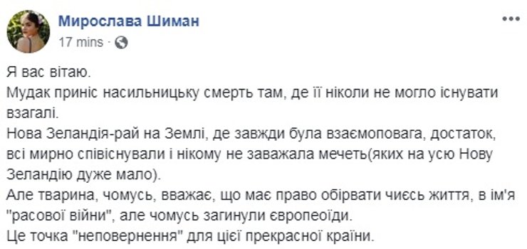 Перевод: около 50 мусульман... женщины, дети... убиты в мечети... террорист белый, террорист-христианин.