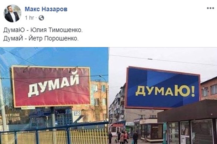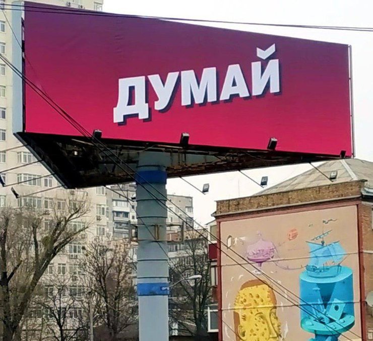 В прицел попал в первую очередь креатив политических пиарщиков. Например, темой для шуток стали билборды в поддержку действующего президента с лаконичным призывом "Думай".