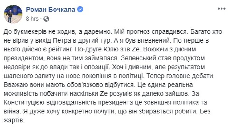 Но кроме анализа итогов первого тура в соцсетях уже начали задумываться, как Зеленскому сохраниться свое первенство во втором, а Порошенко его догнать и перегнать. Пока главные надежды у пользователей на дебаты (тем более, что оба кандидата на них уже заочно согласились), которые и должны показать истинное лицо претендентов на пост главы государства.