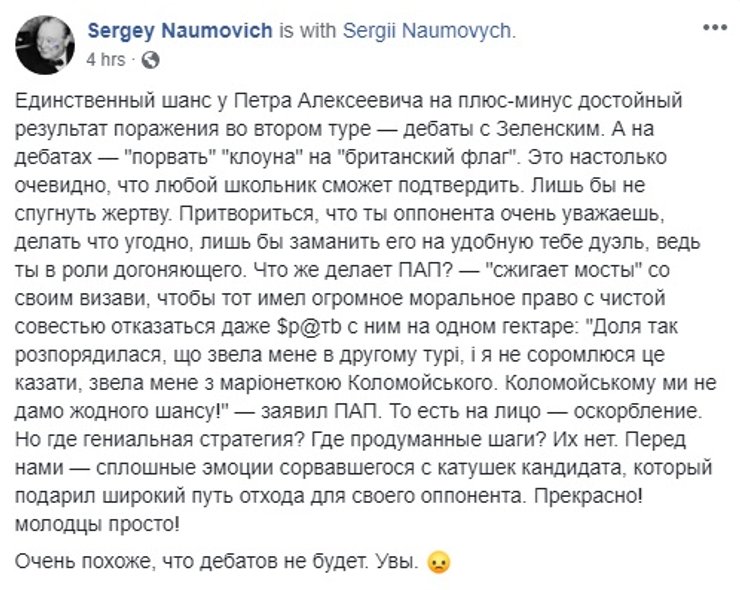 В любом случае сейчас стоит дождаться официальных данных ЦИК, обещанных дебатов и второго тура. А потом посмотреть, что получится, прежде чем паниковать. Хотя в соцсетях паникуют часто и по любому поводу.